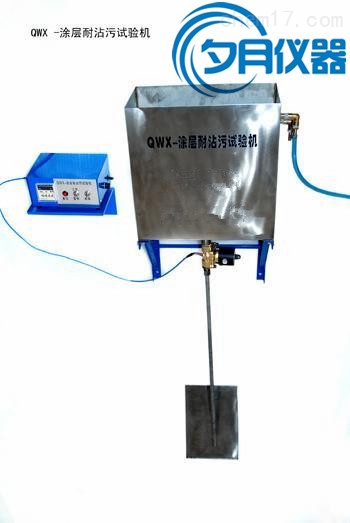 涂层耐沾污试验仪是涂层耐沾污试验的冲洗装置。与反射率配合使用测定涂层耐沾污性。主要由不锈钢水箱、流水管、样板架及电磁阀、时间继电器、等自动控制装置、水箱支架、控制器支架、管路支架等组成。